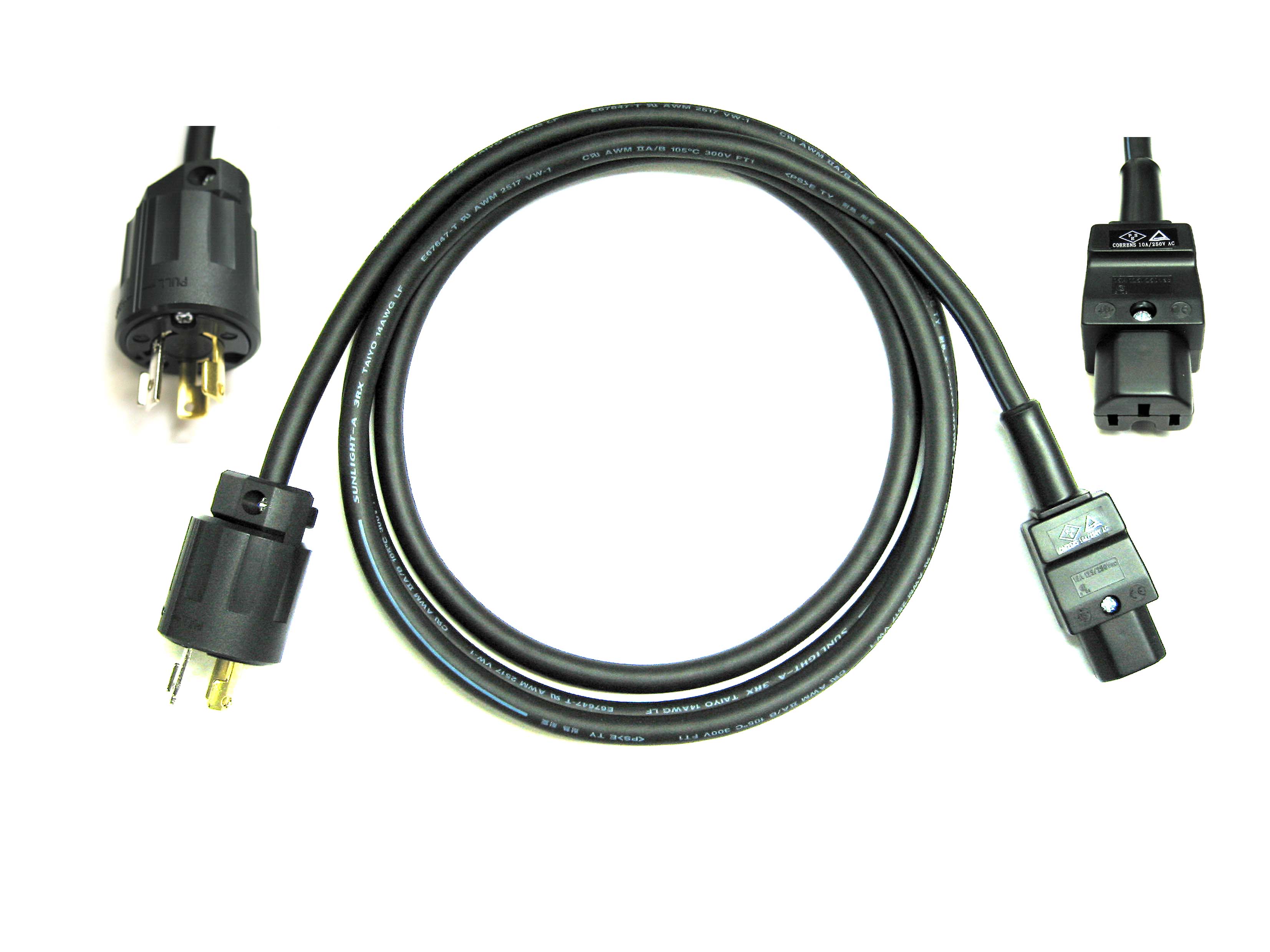と,C15タイプの電源ソケットを加工した 250V 15A対応の電源ケーブルです。